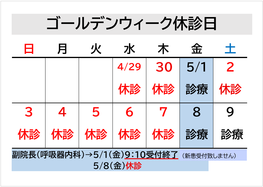 副院長(呼吸器内科)休診及び診察時間変更のお知らせ